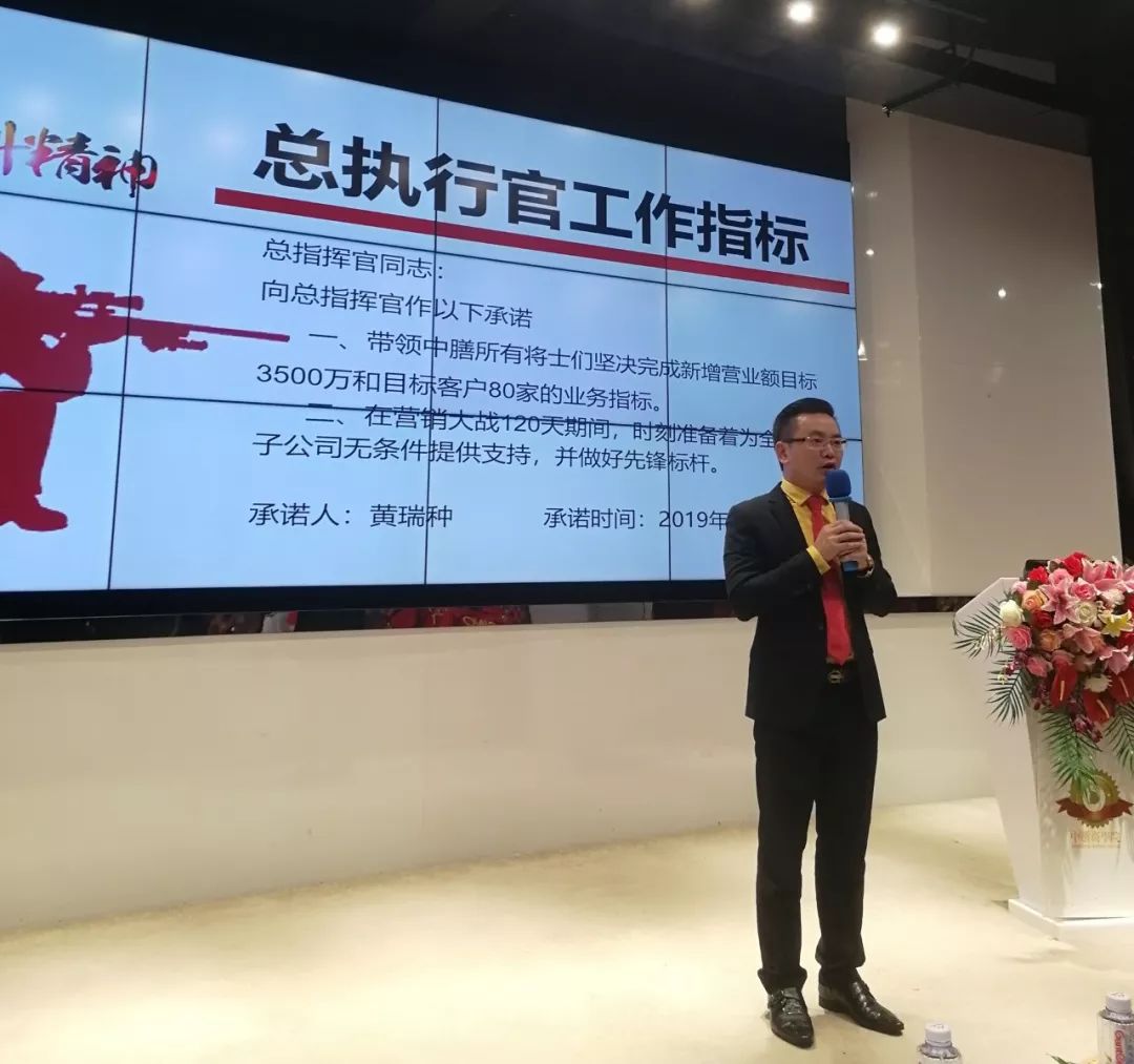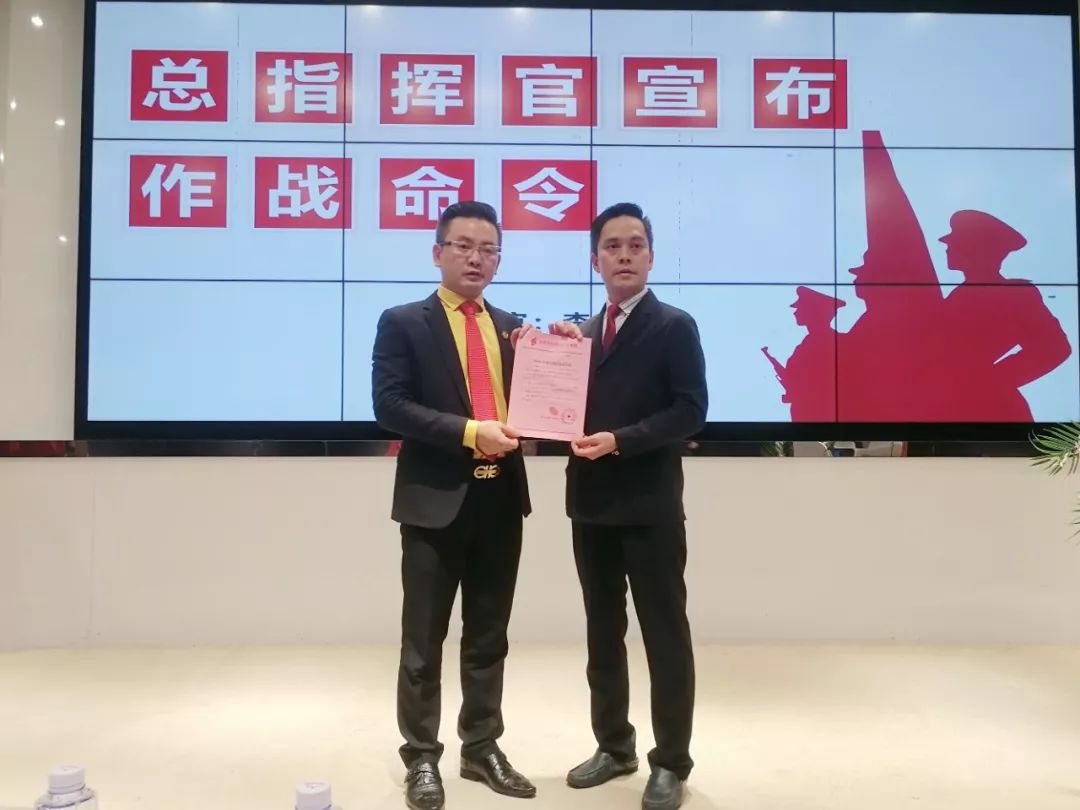 军令状,意味着承诺和决心!营销战士们从黄瑞种总执行官手中接过军令状,使命必达,保证完成任务!