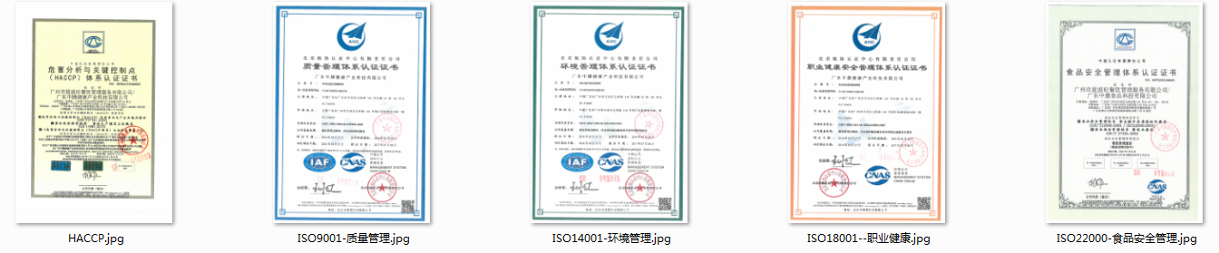 是否通过国际iso9001、iso22000、iso14001、ohsas1800、haccp五大管理体系认证及守合同重信用证书。