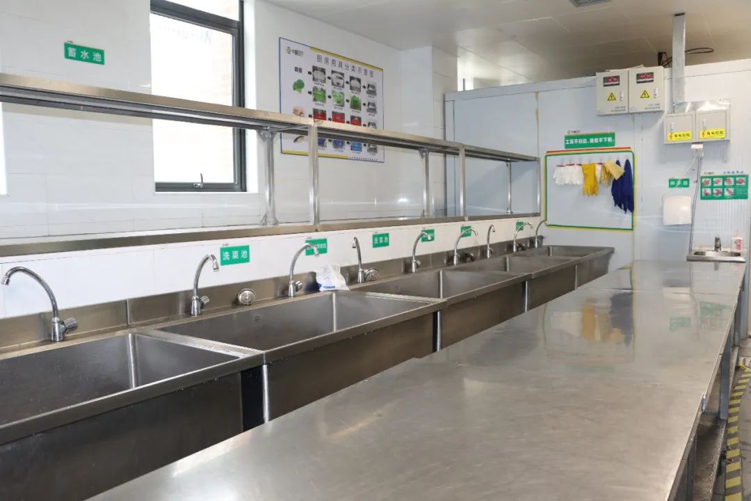 在食品安全、清洁卫生和作业标准方面,主要依托4D后厨管理制度,严格做到标准化、严谨化、流程化,确保后厨干净卫生。厨房明晰作业标准,分工明确、责任到人,实现“整理到位、责任到位、培训到位、执行到位”,确保师生用餐吃得安心舒心。